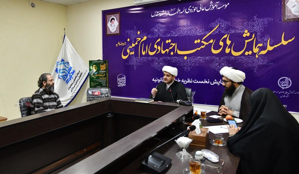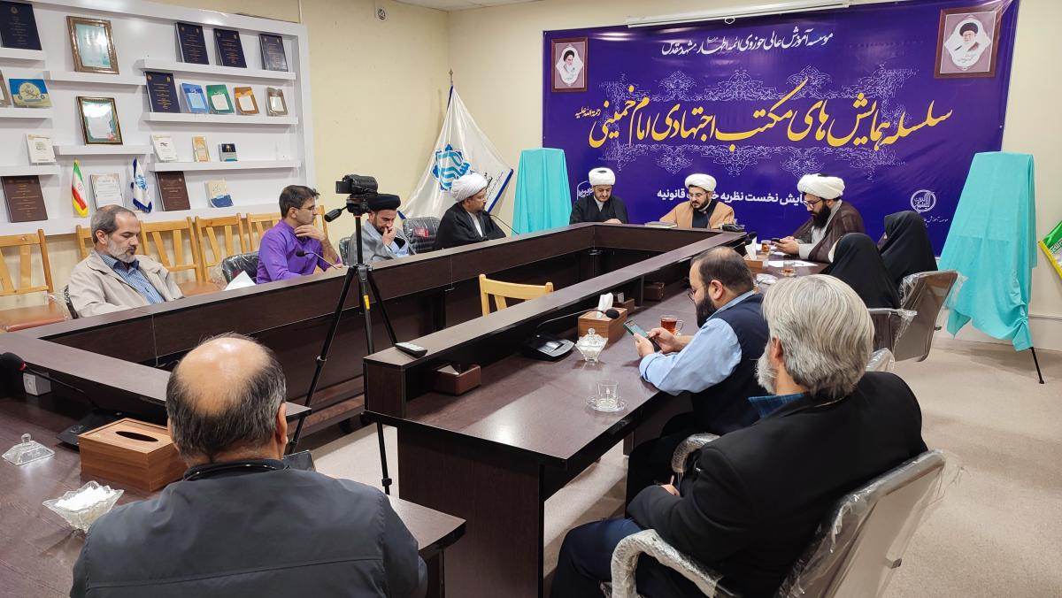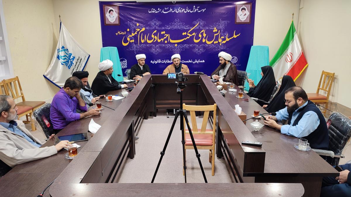نشست خبری سلسله همایشهای بینالمللی مکتب اجتهادی امام خمینی (ره) با محوریت خطابات قانونی در سال نخست، ظهر امروز در مؤسسه آموزش عالی حوزوی ائمه اطهار علیهم السلام مشهد با حضور حجج اسلام مهدی رضایی، معاون علمی حوزه علمیه خراسان، محسن افضل آبادی مدیر مؤسسه حوزوی ائمه اطهار علیهم السلام، حجتالاسلام ابوالفضل فروتن، دبیر اجرایی همایش و تعدادی از مسئولان نهادهای حوزوی مرتبط با این رویداد، برگزار شد.